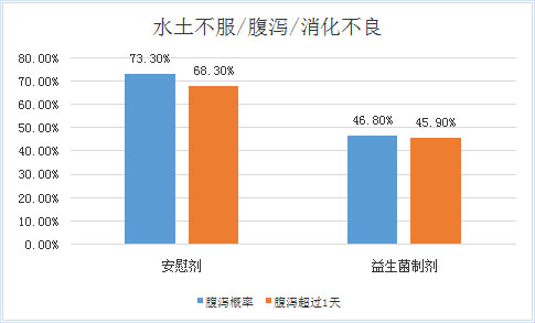 研究結(jié)論:與安慰劑組旅行者腹瀉發(fā)生率高達73.3%相比,益生菌組僅為46.8%。而在發(fā)生腹瀉的人群中,益生菌組只有45.9%的人腹瀉時間超過一天,而安慰劑組則為68.3%。