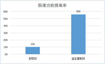 研究結(jié)論:服用益生菌組的患者腸道功能提高56%,而安慰組只有10%,患者腸道功能提高表現(xiàn)