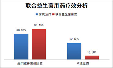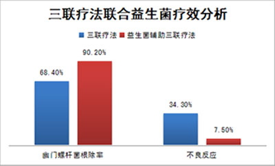 ① 三聯(lián)療法聯(lián)合益生菌治療幽門螺桿菌感染,根除率更高,且不良反應(yīng)降低